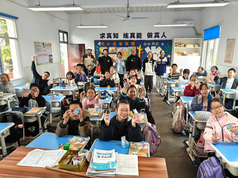 活动伊始,每位同学都收到了一份特殊的礼物——一枚专门定制的江山“金钉子”特色周边小礼物。这枚精致的纪念品瞬间点燃了孩子们的好奇心,为接下来的科学之旅拉开了序幕。